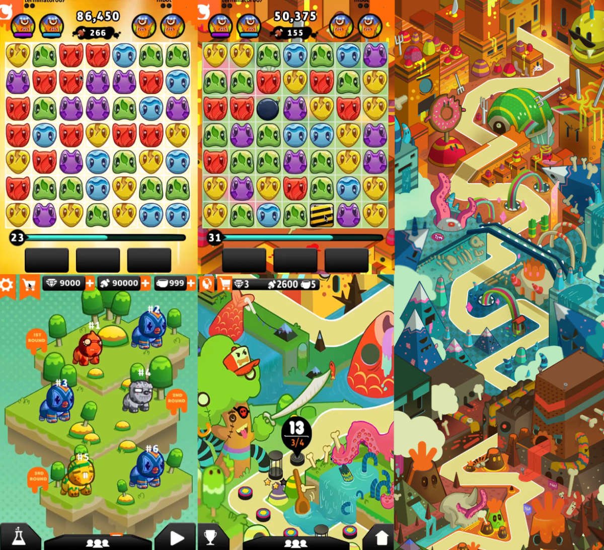 World of Thingiez is a match-three puzzle game with a monster-collecting and monster-fighting component inspired by designer vinyl toys. The player collects toy creatures, battles with them through puzzles, and evolves them while traveling a colorful and stylized game map.